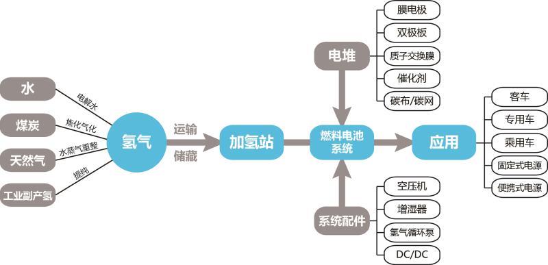 沉寂在高中化學(xué)教科書(shū)里被冠以“人類(lèi)終極能源”的氫能,終于以這樣的形式走入千家萬(wàn)戶(hù)的視野。面對(duì)氫能全產(chǎn)業(yè)鏈這個(gè)無(wú)比龐大的蛋糕,從上游的氫氣制取和儲(chǔ)運(yùn)、加氫站等基礎(chǔ)設(shè)施、到中游的氫燃料電池、再到最終端的汽車(chē)制造,目光所及之處,一片繁華熱鬧。