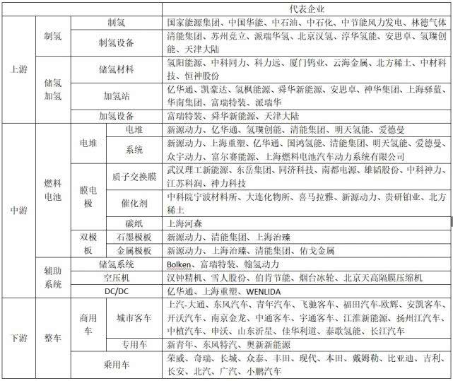 表2:氫能全產(chǎn)業(yè)鏈分布及代表企業(yè)