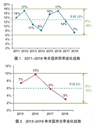 近年來,我國可再生能源發電產業快速發展,裝機規模和發電量持續增長。截至2018年底,我國可再生能源累計裝機達到7.28億千瓦,占全部電力裝機的38.3%,其中,水電裝機3.52億千瓦、風電裝機1.84億千瓦、光伏發電裝機1.74億千瓦,裝機規模均位居世界首位。2018年,全國可再生能源發電量約1.87萬億千瓦時,占全部發電量的26.7%,清潔能源替代作用日益凸顯。然而,隨著產業規模快速擴大,水電、風電、光伏發電等可再生能源在局部地區面臨著較為嚴峻的消納壓力,棄電問題逐步成為制約產業可持續發展的主要瓶頸。對此,近年來國家先后出臺多項政策措施著力解決棄風、棄光、棄水問題,棄電問題得到明顯改善。2018年,全國棄風、棄光、棄水電量約1000億千瓦時,其中棄風率回落至約7%,棄光率回落至約3%(見圖1、圖2)。