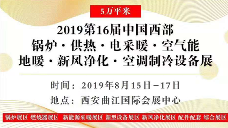 為貫徹落實黨中央、國務院關于進一步推進各地區清潔供暖的決策部署,有序推進煤改電、煤改氣等清潔能源改造工程,加快完善清潔取暖能源基礎設施建設,拓展集中供熱、熱電聯產、多能互補等供熱方式,提升西部地區清潔取暖設施設備建設和運行管理水平。由西安市人民政府主辦,陜西省政府聯合主辦,陜西省節能協會主辦,北京旺旅展覽展示有限公司聯合承辦的2019第16屆中國西部•鍋爐•供熱•電采暖•空氣能•空調制冷設備展覽會與2019年8月15-17日在西安曲江國際會展中心隆重舉辦。屆時組委會將舉辦十余場行業前沿技術及新品發布會,為西部市場展現行業華麗宴會。