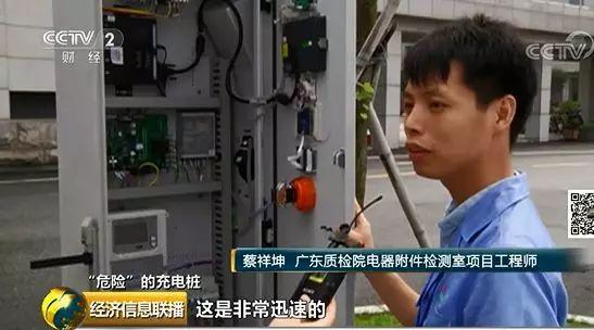 廣東質(zhì)檢院電器附件檢測室項(xiàng)目工程師 蔡祥坤:這臺充電樁輸出電壓額定標(biāo)稱是750伏,它的電壓是非常高的,七百多伏,遠(yuǎn)遠(yuǎn)超過我們消費(fèi)者家庭用電的電壓。 而在這次風(fēng)險(xiǎn)監(jiān)測中,70%的樣品在防觸電方面均不符合國標(biāo),主要問題包括該接地的不接地,故障時(shí)沒有警示。
