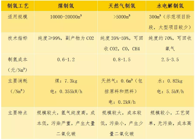 各制氫方法基本指標比較(資料來源:國金證券研究所)