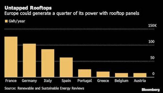 歐洲人只要能夠有效利用屋頂上的空間,就可以大規模擴大低成本的太陽能發電。