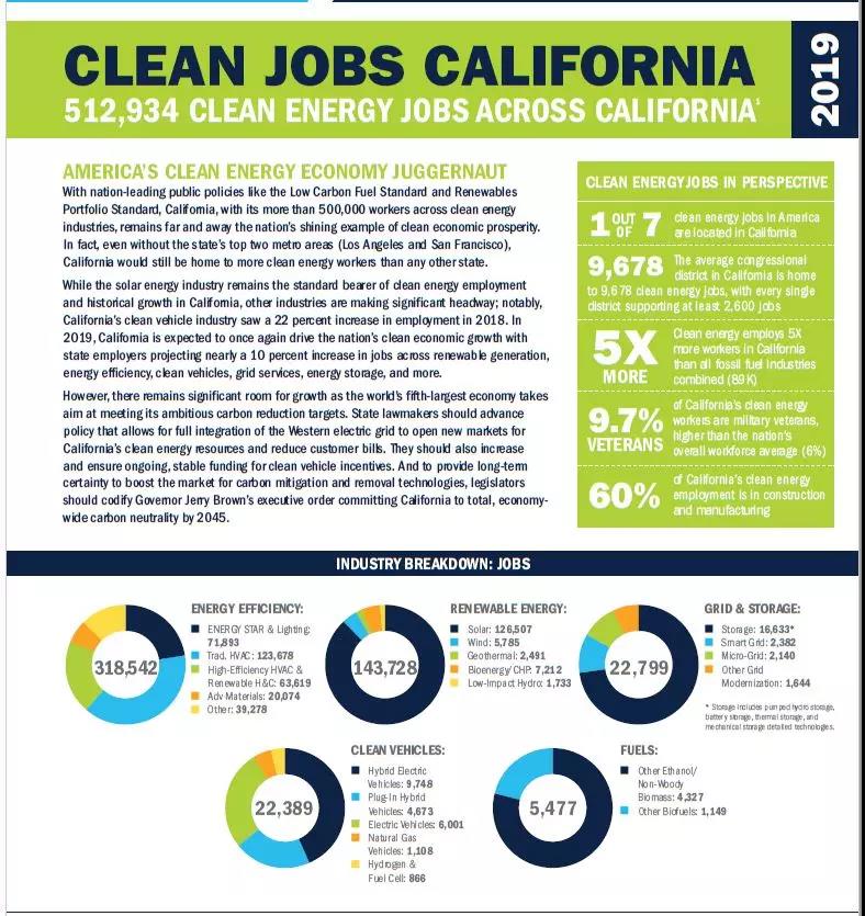 ——在全州范圍內(nèi),2018年清潔能源行業(yè)共有512,934個就業(yè)崗位。其中包括可再生能源就業(yè),如安裝太陽能和風能;建設(shè)電動和混合動力汽車;在建筑物中進行能源效率工作;制造清潔燃料和建設(shè)電池存儲項目。