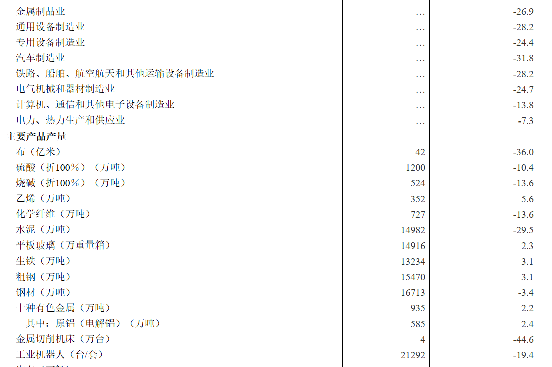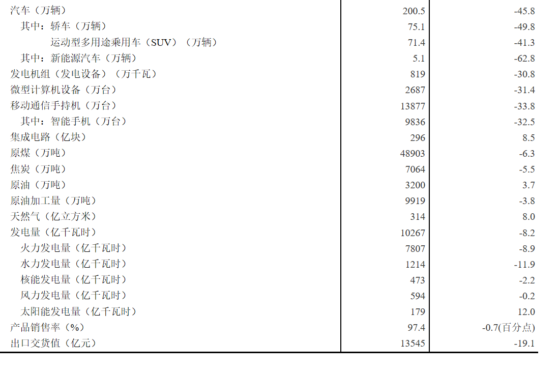 1—2月份,電力、熱力、燃氣及水生產和供應業增加值同比下降7.1%。電氣機械和器材制造業同比下降24.7%。新能源汽車增加值同比下降62.8%。