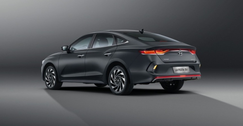 尤其是從鯊魚式前臉延伸出的窗線,已經不能純粹靠側視圖來展現(xiàn),通過正側45度的視圖,可以看出,窗線從C柱一直蔓延到前牌照,這條側面特征線無疑是現(xiàn)代汽車Sensuous Sportiness(感性運動)這種最新設計語言的表達。同時,這也帶來了菲斯塔純電動0.27的超低風阻系數(shù),讓能耗進一步降低。