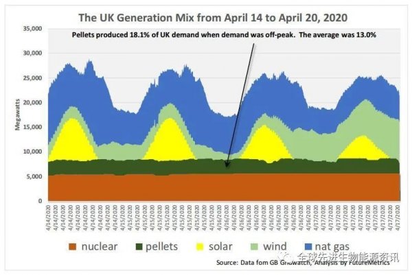 發(fā)電不是斷斷續(xù)續(xù)的。下表顯示了英國顆粒燃料的電力如何發(fā)揮基本負(fù)荷的作用,這對于太陽能和風(fēng)能來說是不可能的。晚上太陽能永遠(yuǎn)不會產(chǎn)生,有時風(fēng)不會吹得很厲害。跟隨圖表上的箭頭,以英國為例,當(dāng)時太陽能(夜晚)和風(fēng)能發(fā)電不多。幾天后,風(fēng)能產(chǎn)生了很多能量。顆粒以及核能都很穩(wěn)定,并支撐著電網(wǎng)的按需供電。為了提高穩(wěn)定性,顆粒燃燒或核能都不會增加大氣中的凈二氧化碳濃度。