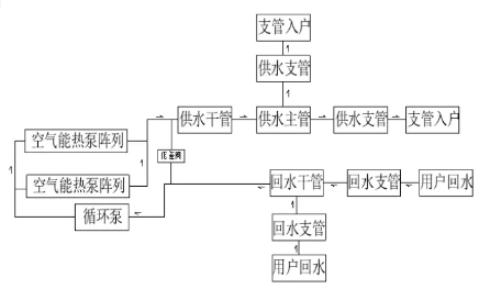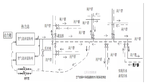 2、空氣能集中式區域供暖系統流程: