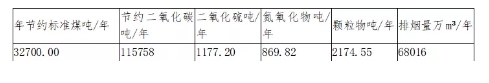 環保效益:總熱負荷 9824.8883萬Kwh,相當于標準煤約3.27萬噸(發電量3000Kwh/噸煤)。