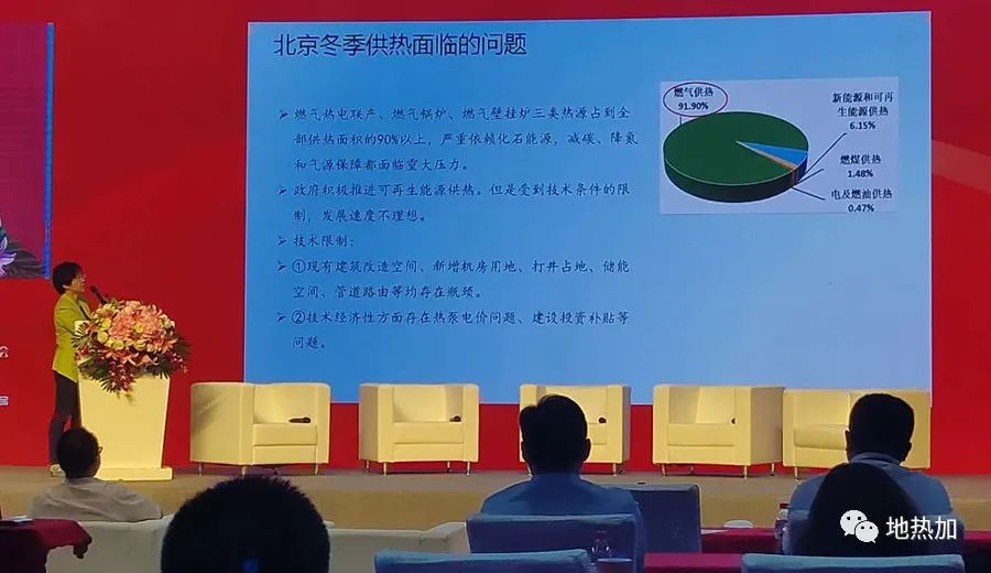 會上,劉榮分析了當(dāng)前北京市地?zé)峁┡l(fā)展存在的三大問題:一是可再生能源供熱綠色低碳化發(fā)展水平低、不均衡;二是供熱布局和模式與新技術(shù)的空間和時間發(fā)展不匹配;三是發(fā)展機制尚需創(chuàng)新以適應(yīng)新能源特點。她認為如何提高可再生能源在北京冬季供暖中的比例,是當(dāng)前的重要任務(wù)。