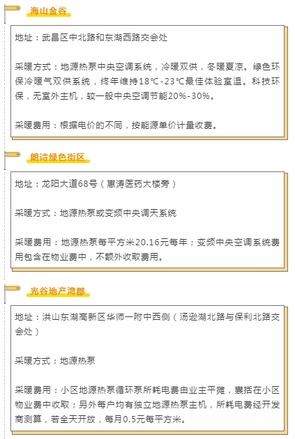 武漢采用地源熱泵集中供暖部分小區名單