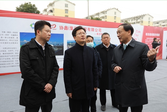 協(xié)鑫能科總經(jīng)理費智向襄陽市委副書記、市長郄英才作項目介紹
