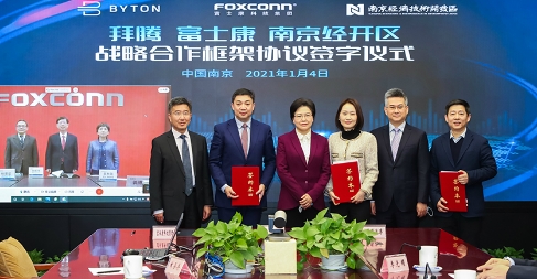 昨日,拜騰、富士康和南京經濟技術開發區正式簽署了戰略合作框架協議,以共同加快實現在2022年一季度前實現拜騰首款車型M-Byte量產的目標。富士康是目前全球最大的電子產品制造商,曾為特斯拉提供汽車零部件。去年1月,富士康母公司鴻海精密工業有限公司決定和菲亞特克萊斯勒組建合資企業,以便在中國開發和生產電動汽車。南京經濟技術開發區于1992年成立,2002年被列為國家級開發區。根據此次合作協議,富士康將提供在先進制造技術方面的專業知識、運營管理經驗,并和拜騰共享產業資源,以此為電動SUV M-Byte的量產提供支持。