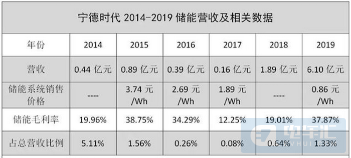 2014-2019這六年,CATL儲能電池的營收在總營收比例占比分別為5.11%,1.56%,0.26%,0.08%,0.64%,1.33%,儲能業績起伏較大,這是在CATL動力電池業務快速發展過程中的營收占比,如果單看儲能電池業務,營收從0.44億元增長至6.1億元,完全是在穩步增長的。