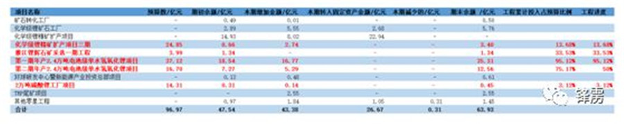如下圖所示,據(jù)天齊鋰業(yè)2019年年報(bào)披露,諸如化學(xué)級鋰精礦擴(kuò)產(chǎn)項(xiàng)目三期、2萬噸碳酸鋰工廠項(xiàng)目、雅江鋰輝石礦采選一期、2.4萬噸電池級單水氫氧化鋰項(xiàng)目1、2期等均未完工,按照所披露數(shù)據(jù)粗略計(jì)算尚需投入42.11億元。