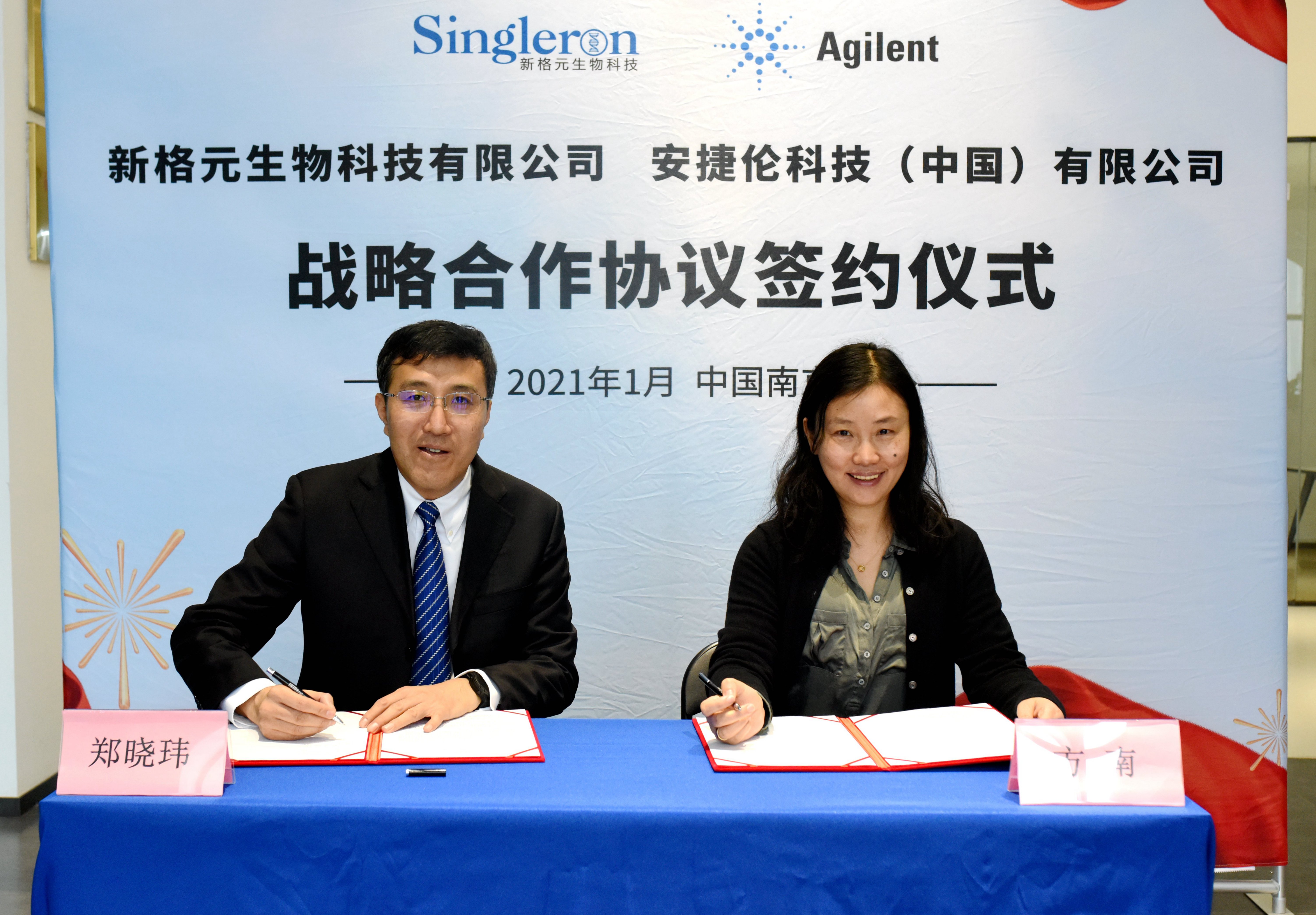 安捷倫大中華區(qū)診斷與基因組學事業(yè)部總經(jīng)理鄭曉瑋(左)與新格元創(chuàng)始人、首席執(zhí)行官方南(右)