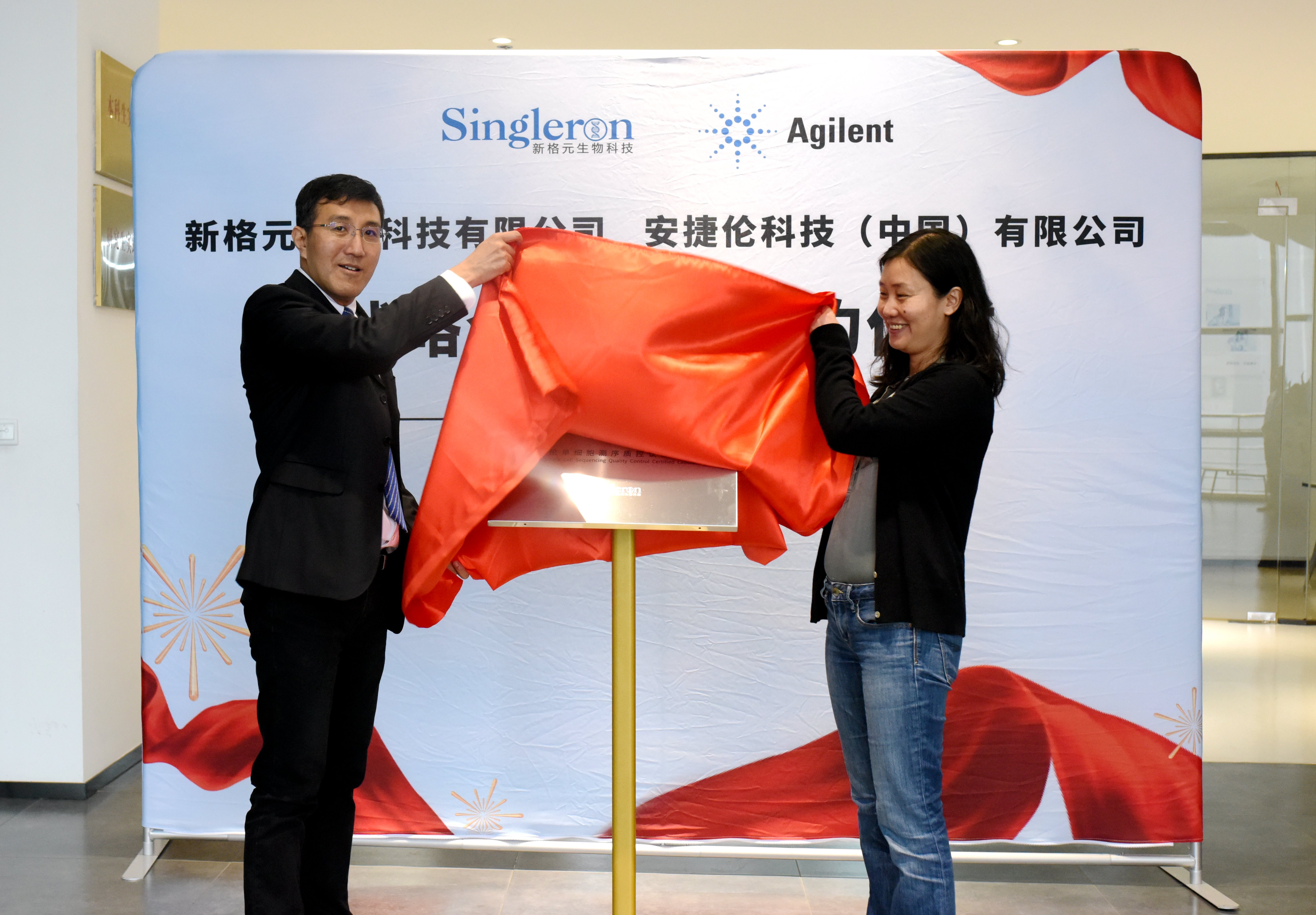 雙方領(lǐng)導為《安捷倫單細胞測序質(zhì)控認證實驗室》揭牌