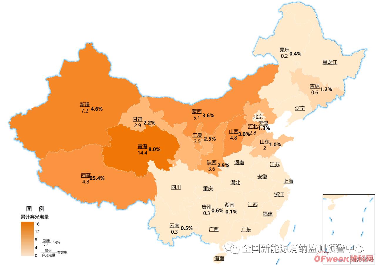 圖片:截至12月底各地區累計棄光電量(億千瓦時)及棄光率