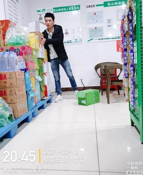在云南曲靖,大年初一,團油員工王夢靈帶著暖心的新年禮包,來看望合作油站加油員。節日期間,油站值班人員驟減,他和往常一樣幫忙整理貨物,做一些力所能及的事。