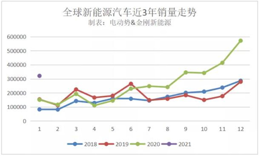 延續去年底的超強走勢,2021年開年全球新能源市場繼續高歌猛進,剔除2月的春節偶然因素,我們預計這種走勢會持續一段時間,就看國內新的商業模式能否順利銜接上。