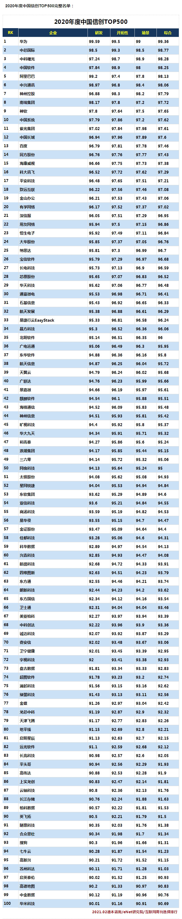 近日,中國科學院《互聯網周刊》、eNet研究院、德本咨詢聯合發布了“2020年度中國信創TOP500”,遠光軟件憑借在企業管理、能源互聯等信息化領域的多年實踐積累和技術創新,進入榜單前100名,排名第82位。