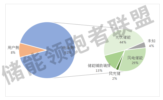 2020年風電儲能是行業中的熱點話題,從上圖占比29%中也能夠看出,風電儲能項目的數量幾乎在2020年幾乎可以說是指數型增長,足以說明風電儲能發展之迅速,發電集團響應風電配置儲能政策之積極;光伏儲能項目依然占據了將近一半的占比,光伏平價極大地降低了光伏儲能項目的成本,擴大了其市場。