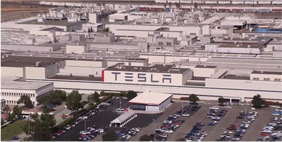 圖注:特斯拉位于加州弗里蒙特的超級工廠。規(guī)模比上海臨港超級工廠更大,除了Model 3,還生產(chǎn)Model S和Model X兩款車型