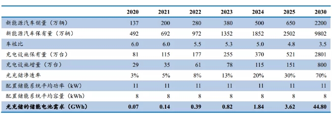 2020-2030國內光儲充一體化儲能需求測算