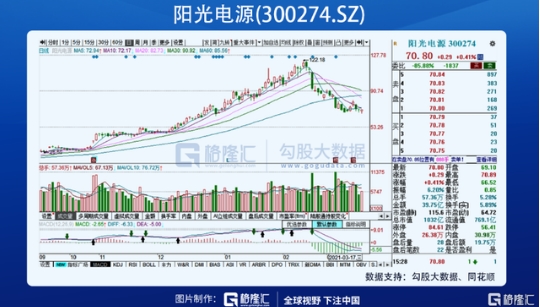陽光周一跌近9%,兩天時(shí)間也表現(xiàn)較弱;陽光從最高點(diǎn)下來,跌近42%。