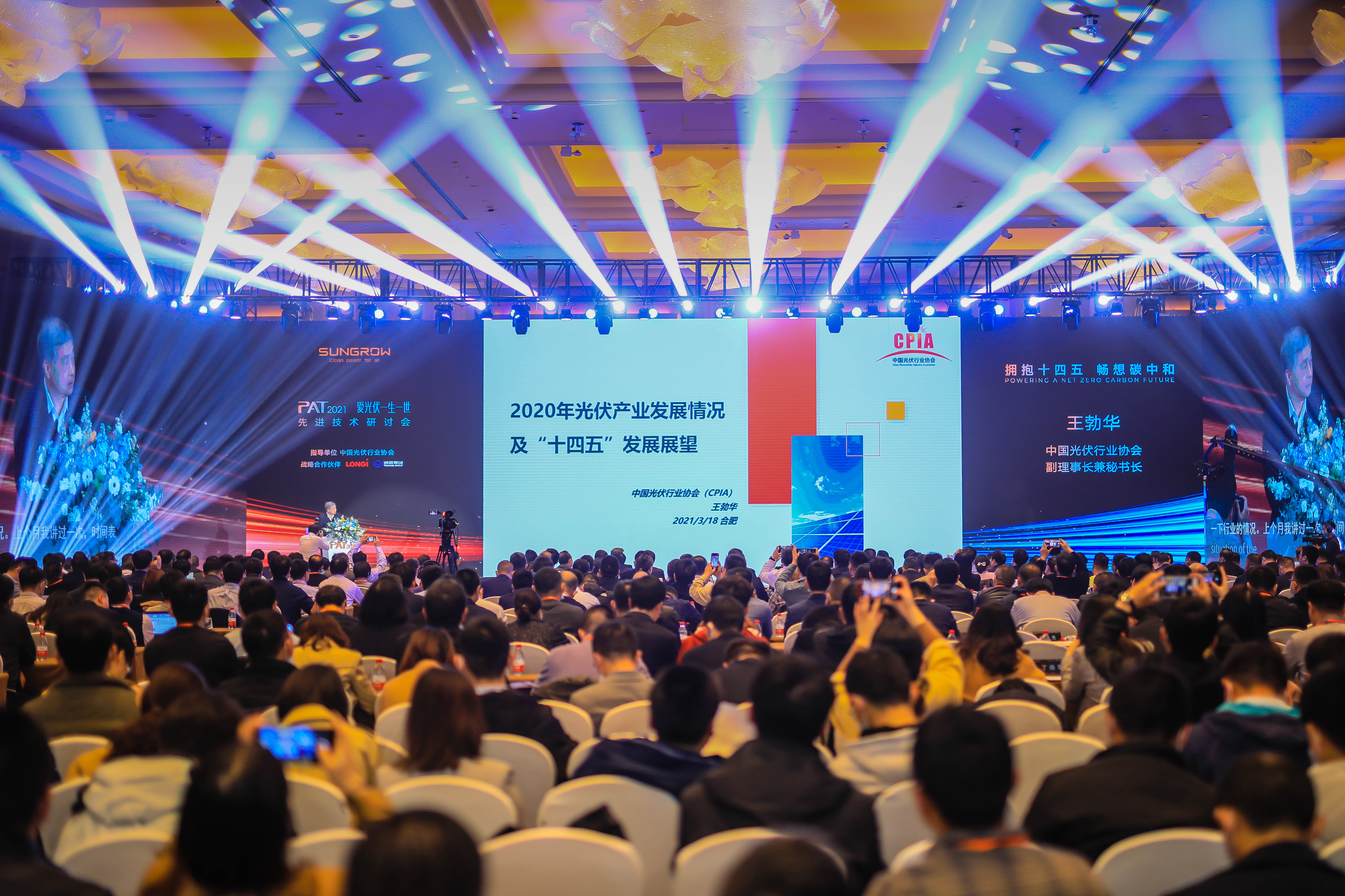 3月18日,以“擁抱十四五暢想碳中和”為主題的“PAT2021愛光伏一生一世”先進(jìn)技術(shù)研討會(huì)在合肥舉行。陽光電源重磅發(fā)布全球功率最大組串逆變器SG320HX,來自全球近千位行業(yè)協(xié)會(huì)、地方政府和行業(yè)大咖共同見證這一歷史性時(shí)刻。