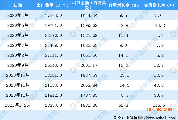 標簽:2021年2月,太陽能電池出口,數據統計分析