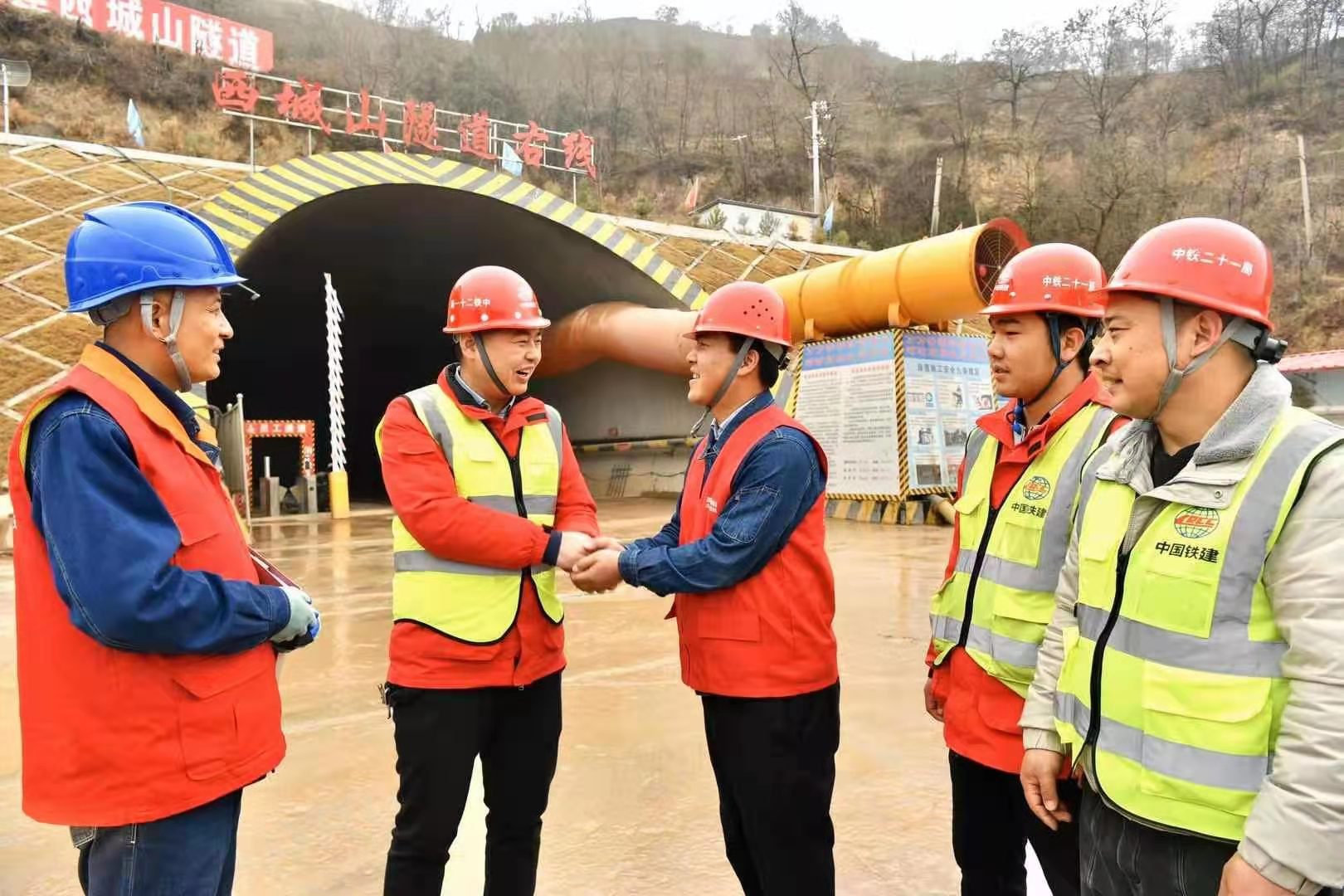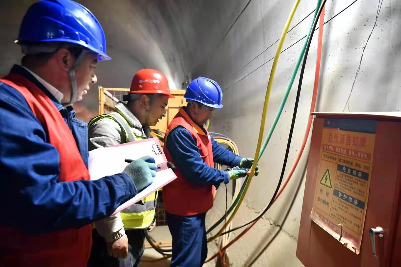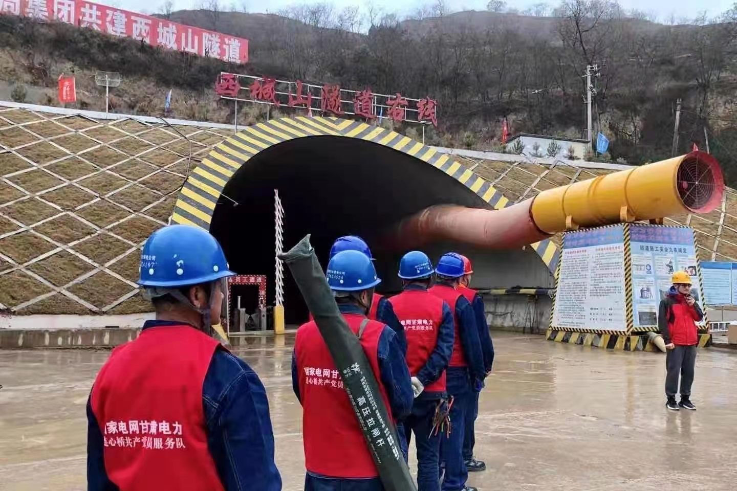此處更有一群來(lái)回穿梭,身著紅馬甲的電力工人忙碌其間,一片熱火朝天的繁忙景象恰到好處。