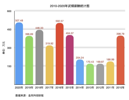 和王石一樣,武鋼每年也會從金風科技獲取不菲的薪酬。2020年,他領取的薪酬為507.48萬元,為過去十年中最高。