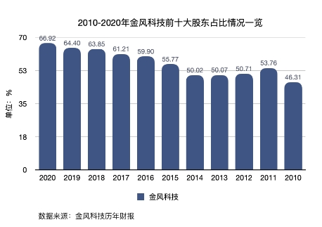 兩家公司的股權均很分散,2020年,金風科技前十大股東的股份占比為66.92%,為歷年最高。2020年前三季度,萬科A前十大股東的股份占比為59.73%。