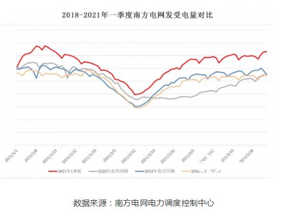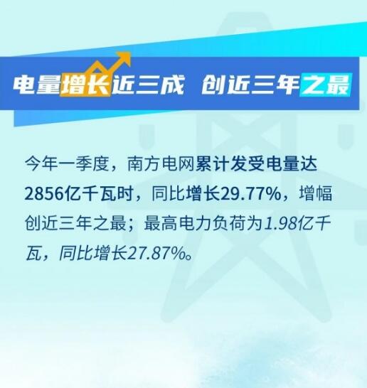 今年一季度,南方電網負荷、電量增長顯著,特別是春節后負荷恢復速率超過2019年。