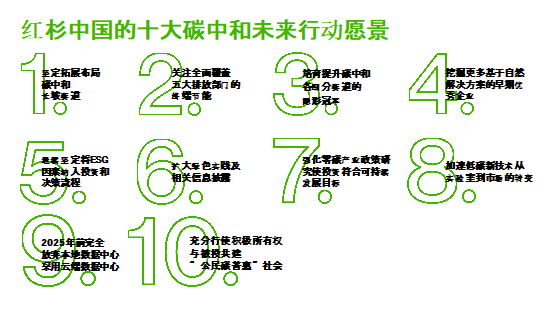 報告中,紅杉中國也基于自身實踐發(fā)布了“十大碳中和未來行動愿景”,承諾從投資決策到信息披露,從領域布局到企業(yè)陪伴,從設計、生產到生活,全面貫徹低碳理念。