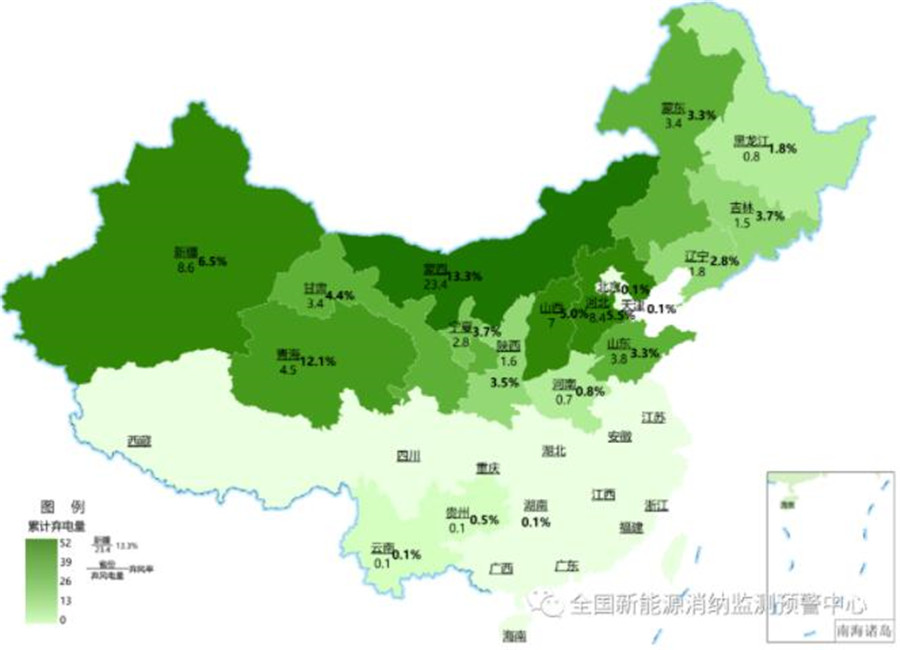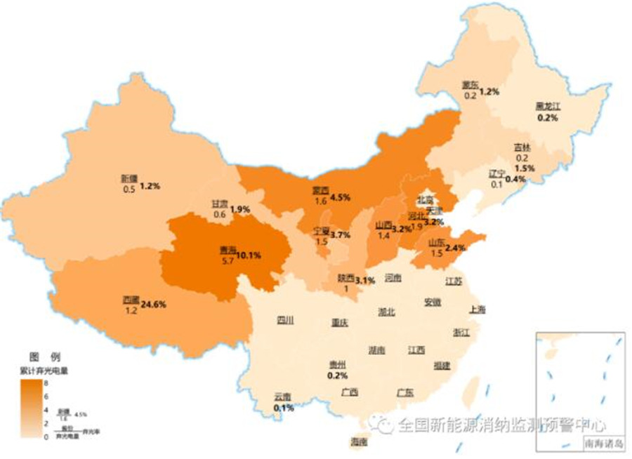 截至3月底各地區(qū)累計棄光電量(億千瓦時)及棄光率