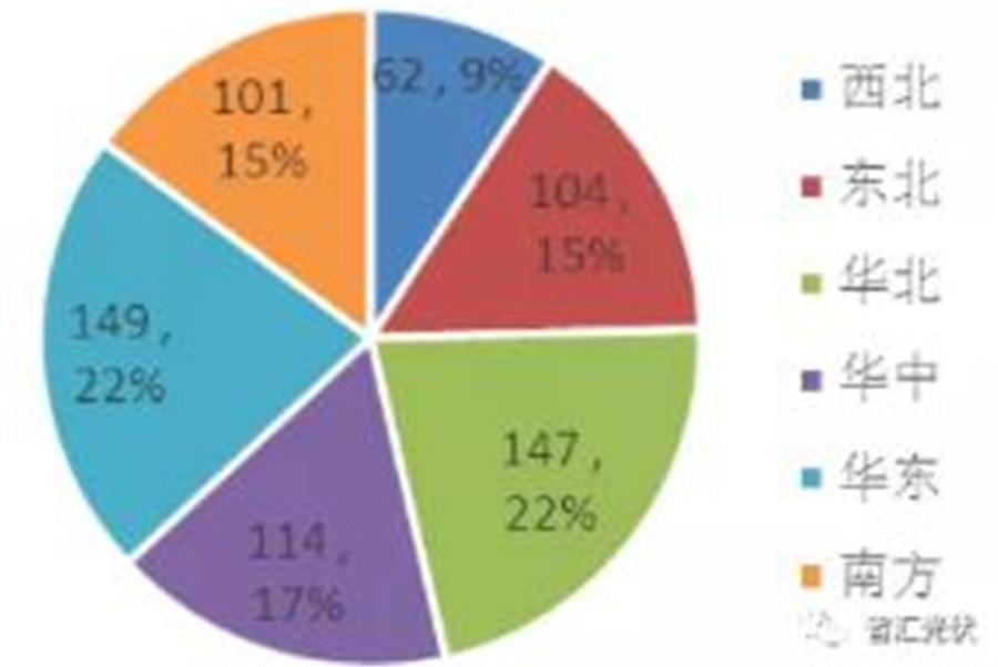 從區(qū)域分布來看,中東部和南方地區(qū)新增風電并網(wǎng)363萬kW,占全國的53.6%。各區(qū)域一季度新增裝機如下圖所示。