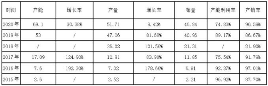 近年來,寧德時代產(chǎn)能增長非常迅速,2015年產(chǎn)能僅為2.6GWh,到2020年,這一數(shù)據(jù)增長到69.1GWh,不過產(chǎn)能利用率由90%下降至74.83%,應該是受疫情影響。