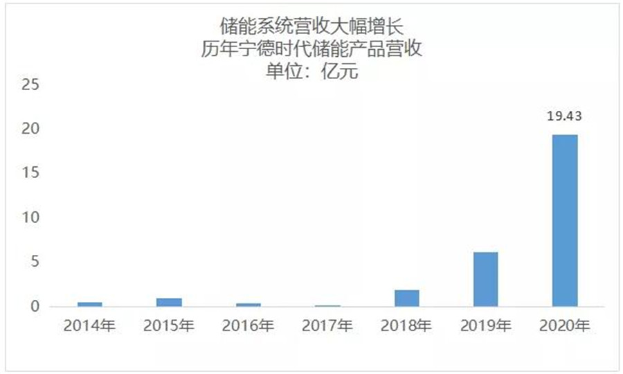 隨著前期儲能市場布局逐步落地,寧德時代去年全年實現(xiàn)儲能系統(tǒng)銷售收入為19.43億元,同比增長218.56%。