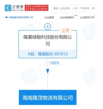 企查查APP顯示,5月6日,海南隆茂物流有限公司成立法定代表人為鐘寶申,注冊(cè)資本1000萬(wàn)元人民幣,經(jīng)營(yíng)范圍包含:國(guó)內(nèi)貨物運(yùn)輸代理;國(guó)際貨物運(yùn)輸代理;陸路國(guó)際貨物運(yùn)輸代理;裝卸搬運(yùn);普通貨物倉(cāng)儲(chǔ)服務(wù)等企查查股權(quán)穿透顯示該公司由隆基股份(601012)100%控股。