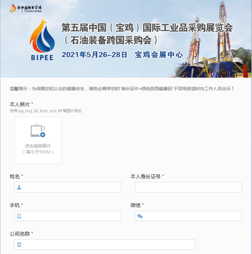 第五屆中國(寶雞)國際工業(yè)品采購展覽會(石油裝備跨國采購會)將于2021年5月26-28日在寶雞會展中心舉辦,線上實名登記現(xiàn)已全面開啟,提前登記,告別排隊。