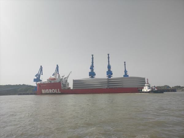 5月8日,靠泊在揚州港3號泊位的 “波弗特海”輪(荷蘭鹿特丹籍)在揚州海事的悉心維護下順利完成港內移泊作業。據了解,這艘173米長的船舶是全球航運市場中最大的風電葉片輪,本航次在揚州港裝載120片V150型葉片(15萬立方米)發往越南三個港口,葉片數和葉片方量將創下兩個世界第一。