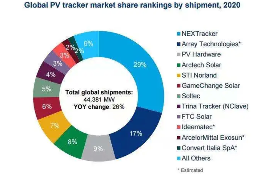 圖片:2020年全球跟蹤支架市場(chǎng)TOP10 來(lái)源:伍德麥肯茲