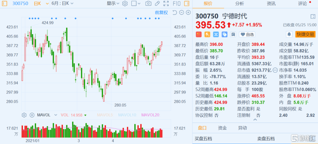 寧德時代董事長曾毓群對外透露,寧德時代將于2021年7月前后發(fā)布鈉電池。5月24日,寧德時代股價上漲3.3%,今天繼續(xù)收漲2%。