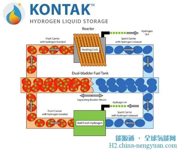 Kontak是一家位于美國西雅圖的早期技術公司,它已經申請了一種新的儲氫技術的專利,該方法通過化學方式將氫與液體載體結合,并在需要時安全地釋放。