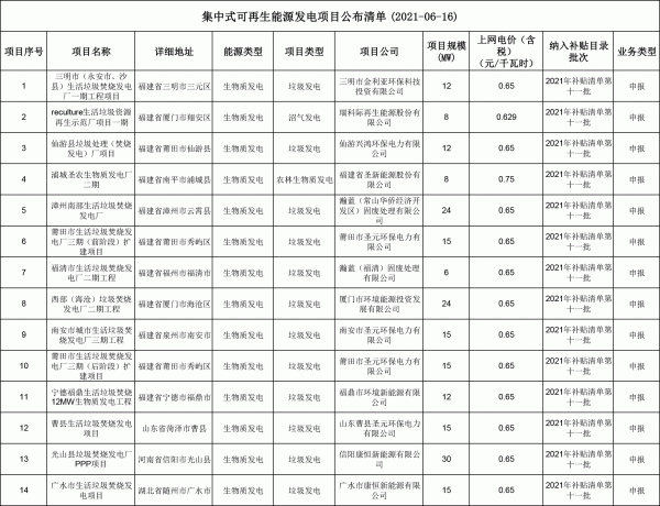 6月15日,國(guó)網(wǎng)新能源云發(fā)布《關(guān)于公布2021年第十一批可再生能源發(fā)電補(bǔ)貼項(xiàng)目清單的公告》。 《公告》顯示,納入2021年第十批可再生能源發(fā)電補(bǔ)貼項(xiàng)目清單的項(xiàng)目共305個(gè),其中包括14個(gè)集中式生物質(zhì)發(fā)電項(xiàng)目,一共211MW。