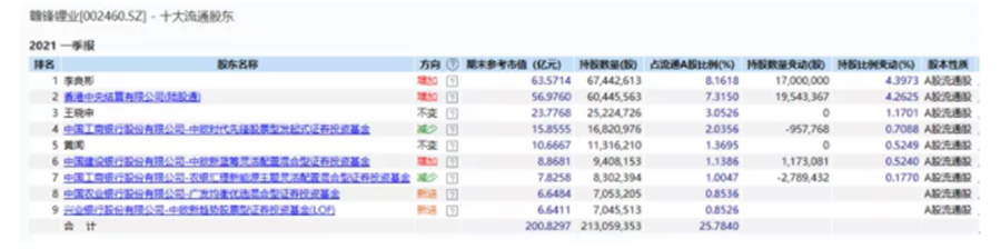 在贛鋒鋰業(yè)上漲期間,機構投資者獲利豐厚。從2021年一季報公司披露的前十大流通股中可以看到,多位明星基金經(jīng)理赫然在列,包括中歐基金的代表人物周蔚文、周應波,農(nóng)銀匯理的2020年度業(yè)績冠軍趙詣,可謂眾星云集。