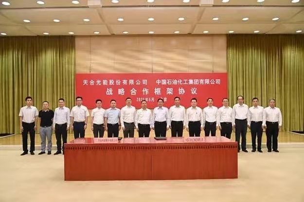6月23日,中國石化集團公司與天合光能股份有限公司簽署戰略合作框架協議。協議約定,雙方將圍繞國家 “2030/2060”雙碳目標,發揮互補優勢,在加油站零碳能源轉型、綠電制氫業務、光伏材料供應及研發等方面,通過技術、業務及資本層面的協同,開展深度合作,推動新能源業務高質量發展。
