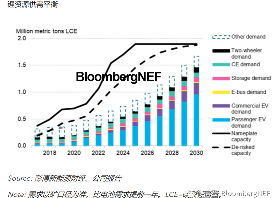 到2030年,電池級鋰化學品應供應充足,可以滿足電池需求,但鋰金屬總需求(170萬公噸碳酸鋰當量)可能面臨供應缺口。彭博新能源財經預計,鋰市場供應將在未來2年以及2030之前的最后幾年中收緊。材料回收有助于平衡市場供需。